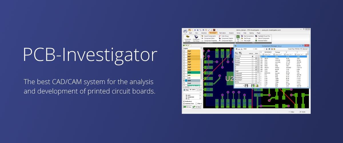 PCB-Investigator Developer focuses on the best features to see and work on electronic details to carry out a reliable design review. After all: Your task is to guarantee the functionality and reliability of the printed circuit board! A concept that may appear good at first glance, may nevertheless contain small errors in detail. And you know best how quickly this can lead to severe problems.